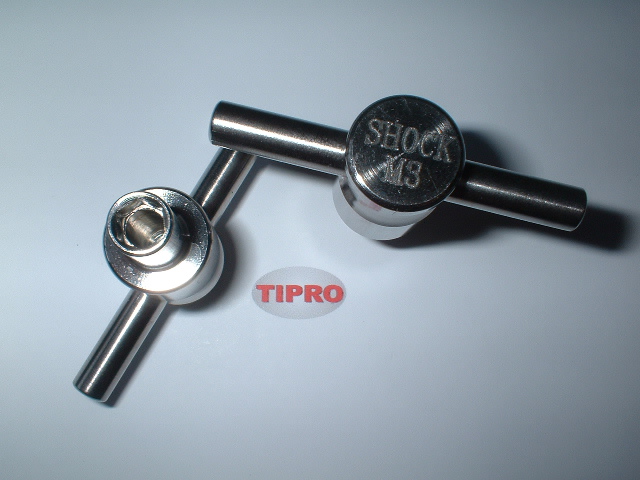 TIPRO are manufacturing a series of tools by Titanium (Ti-6Al-4V ASTM GR5) like metric M3 wrench keys, metric M4 wheel keys for HPI, Tamiya, Kyosho, Yokomo, Schumacher , etc. toy and racing cars. Titanium Bistouries Hilt made by Titanium Grade-23 Medical Implant materials